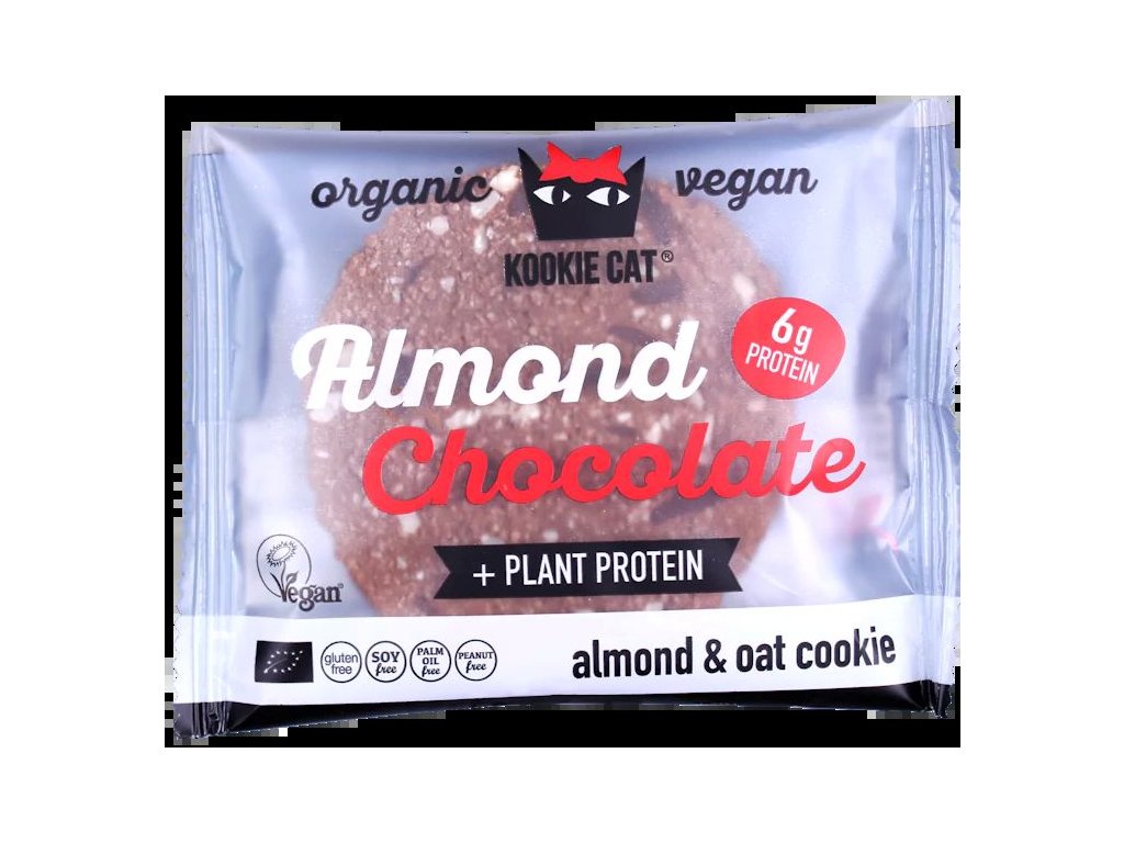 Dávka kvalitního mandlového a rýžového proteinu doplňující čokoládovou chuť, této křehké bezlepkové ručně dělané cookies sušence, je tvořena mandlemi, kvalitní čokoládou a dalšími nutričně bohatých surovin v BIO kvalitě. Základ je vyroben z kešu oříšků, bezlepkových ovesných vloček. Tato sušenka je skvělou volbou ke zdravé svačince nebo doplnění energie na cesty i po sportu.