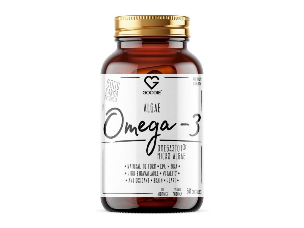 Algae olej od Goodie tvoří Algal Omega3to1® – certifikovaný prémiový olej z fermentovaných mořských řas Schizochytrium sp., pěstovaných v uzavřených, kontrolovaných podmínkách. Omega-3 mastné kyseliny DHA a EPA jsou zde v přirozeném poměru 3 : 1, tedy s vyšším podílem DHA, který je zásadní pro zdraví mozku a očí.